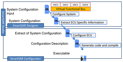 软件集成开发工具SmartSAR Studio分为设计工具SmartSAR Designer和配置集成工具SmartSAR Configurator。 设计工具SmartSAR Designer的主要特性包括: